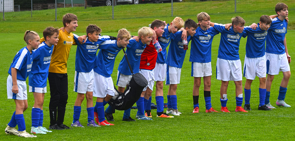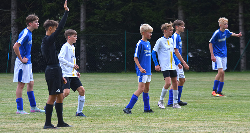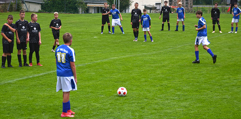 In regelmäßigen Abständen konnten dabei Treffer erzielt werden. Beim Pausenstand von 6:0 war das vierte Tor von Sid Glöckner, per Kopf das Sehenswerteste. Eine Maßflanke von T. Werner von der linken Strafraumkante war dabei vorrausgegangen. Jannik W. im SpG Tor konnte sich bei zwei Kontern auszeichnen.